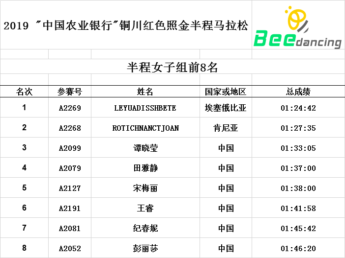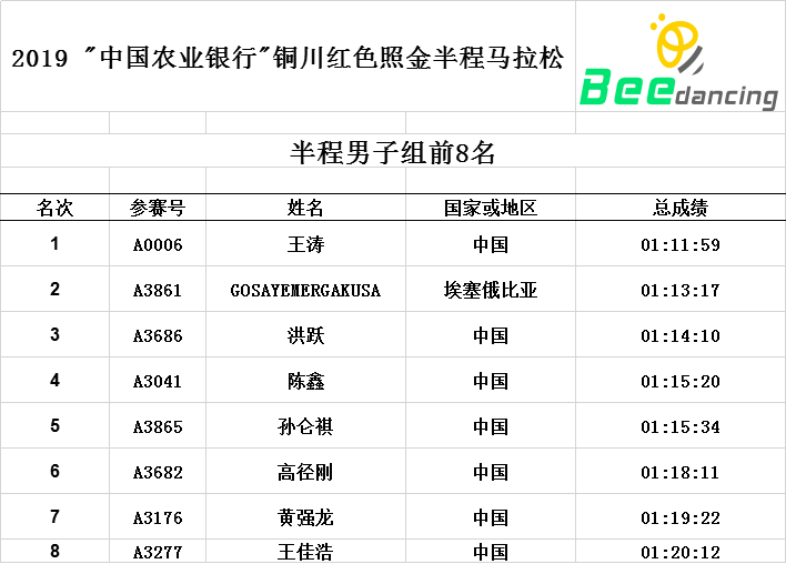 【成绩公示】2019“中国农业银行”铜川红色照金半程马拉松赛